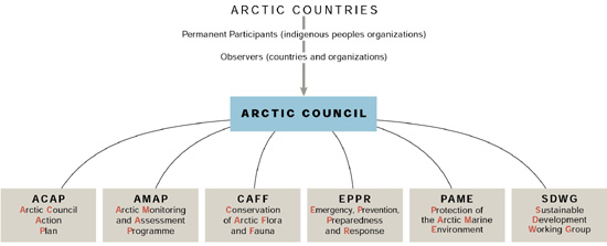 - Arctic Contaminants Action Programme (ACAP) responsible for increasing efforts to limit and reduce emissions of pollutants into the environment and promote international cooperation.